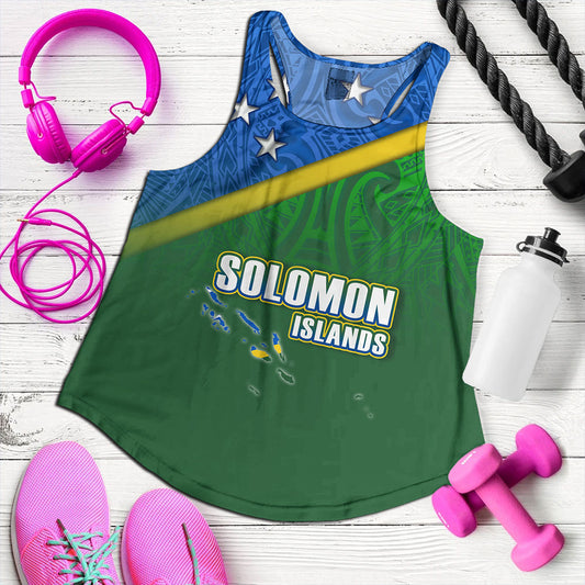 Solomon Islands Women Tank Flag Color With Traditional Patterns