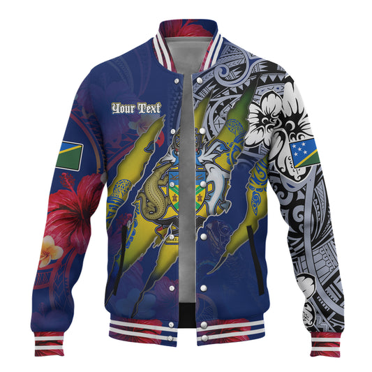 Solomon Islands Custom Personalised Baseball Jacket Polynesian Tribal Tattoo