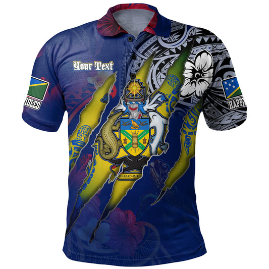 Solomon Islands Polo Shirt Custom Solomon Islander Blood Inside Me Polynesian Sleeve Tattoo Tropical Blue