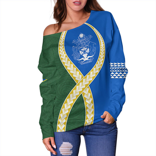 Solomon Islands Off Shoulder Sweatshirt Polynesian Tattoo Flag And Coat Of Arms