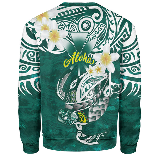 Hawaii Sweatshirt Polynesian Honu With Plumeria Tropical Ocean Wave