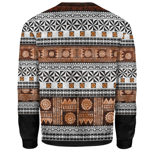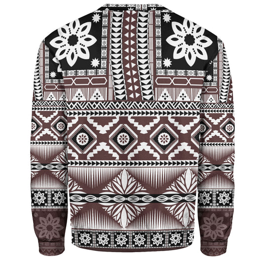 Fiji Sweatshirt Fijian Tapa Pattens Brown Color Vintage Design