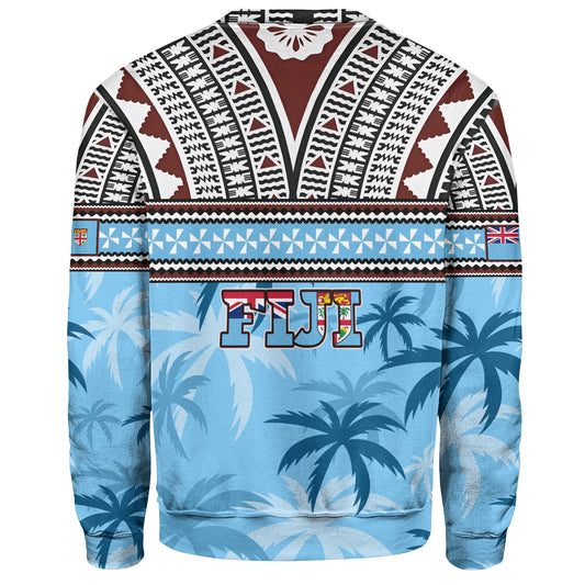 Fiji Sweatshirt Happy Fiji Day Fijian Masi x Tropical Palm Leaf Tribal Curve Style