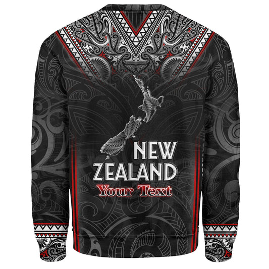 New Zealand Sweatshirt Maori Patterns With Map Silver Fern