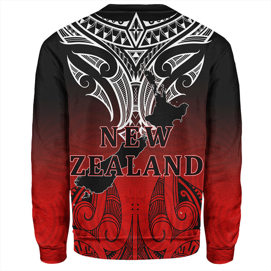 New Zealand Sweatshirt - New Zealand Map Maori Face Patterns
