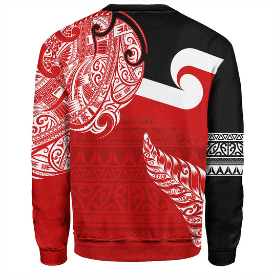 New Zealand Sweatshirt - Aotearoa Silver Fern With Kiwi Bird Maori Style