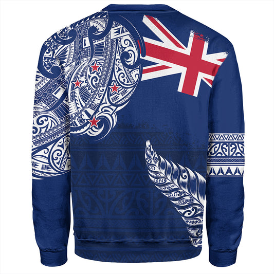 New Zealand Sweatshirt Aotearoa Maori Tribal Flag With Silver Frern