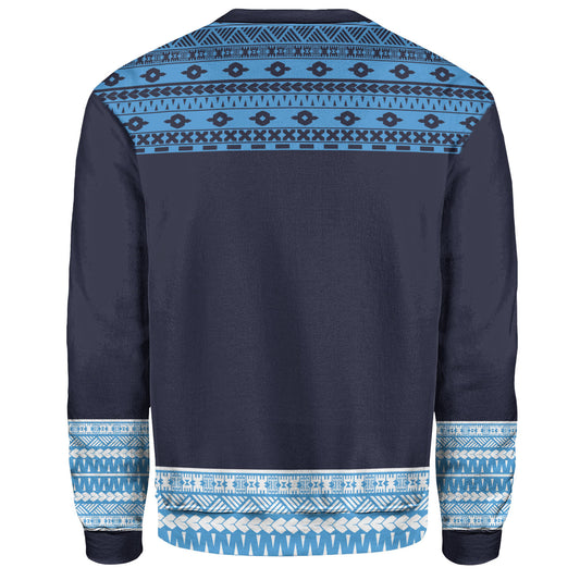 New Zealand Sweatshirt Maori Tribal Silver Fern With Star Tattoo Style Blue