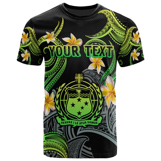 Samoa T-shirt - Custom Personalised Polynesian Waves with Plumeria Flowers (Green)