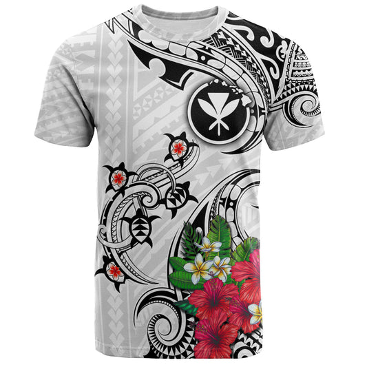 Hawaii T-Shirt Turtle Polynesian Tribal Tropical Flowers