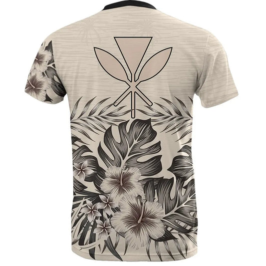 Hawaiian T-Shirt - Kanaka Maoli Beige Hibiscus