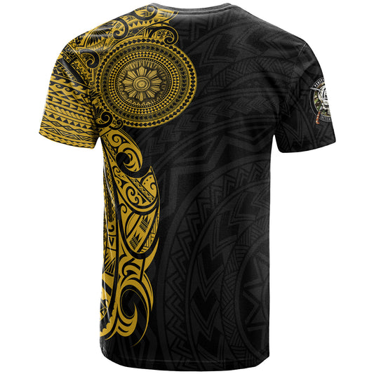 Sarno Kali Shield Filipinos T-Shirt Polynesian Half Sleeve Gold Tattoo With Seal Black