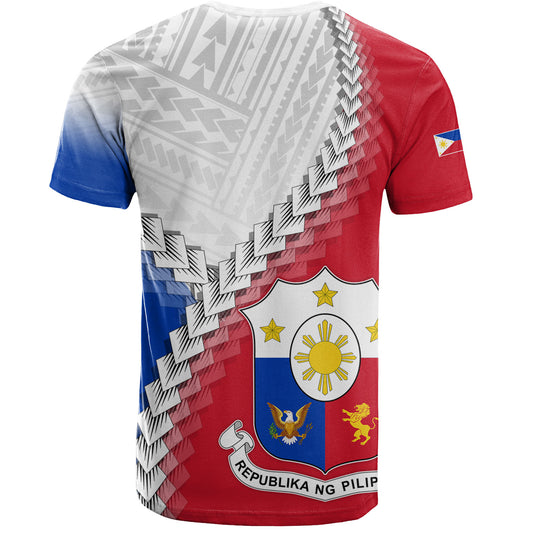 Philippines Filipinos T-Shirt Custom Filipino Coat Of Arms With Tribal Patterns Flag Style