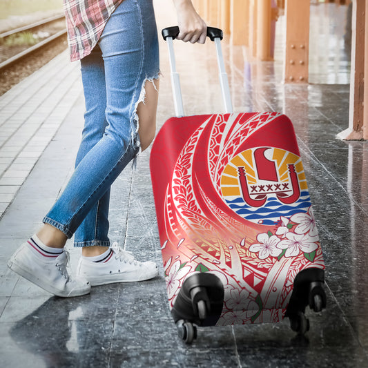 Tahiti Luggage Cover Polynesian Pattern Style White Flowers