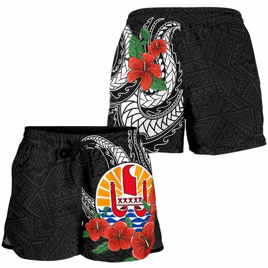 Tahiti Polynesian Women Shorts - Hibiscus Coat of Arm Black