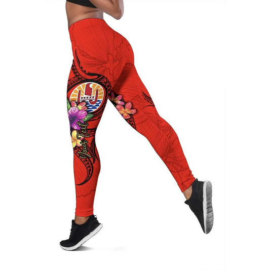 Tahiti Polynesian Custom Personalised Legging - Floral With Seal Red