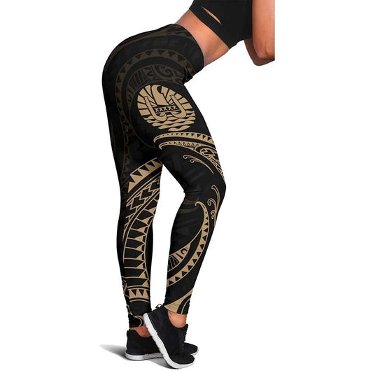Tahiti Polynesian Legging - Gold Tribal Wave