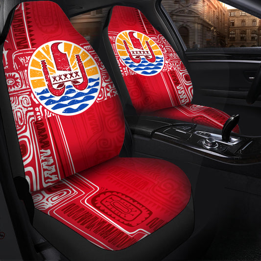 Tahiti Car Seat Covers - Tahiti Seal In Polynesian Tattoo Style (Red) -BN25