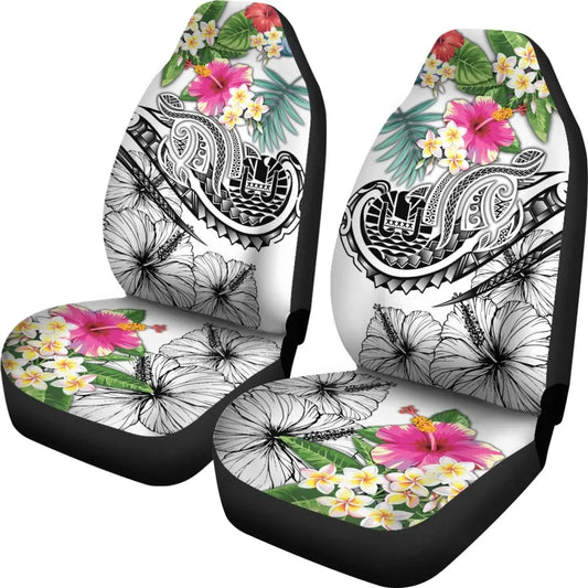 Tahiti Polynesian Car Seat Covers Pride Seal And Hibiscus White