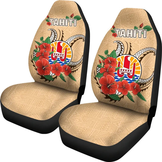 Tahiti Polynesian Car Seat Covers - Coat Of Arm With Hibiscus White