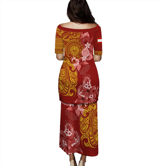 Tahiti Puletasi Polynesian Tropical Plumeria Tribal Red