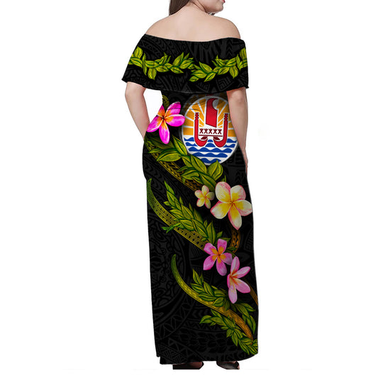Tahiti Women Off Shoulder Long Dress - Plumeria Tribal
