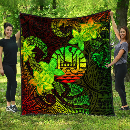 Tahiti Custom Personalised Premium Quilt - Turtle Plumeria (Gold)