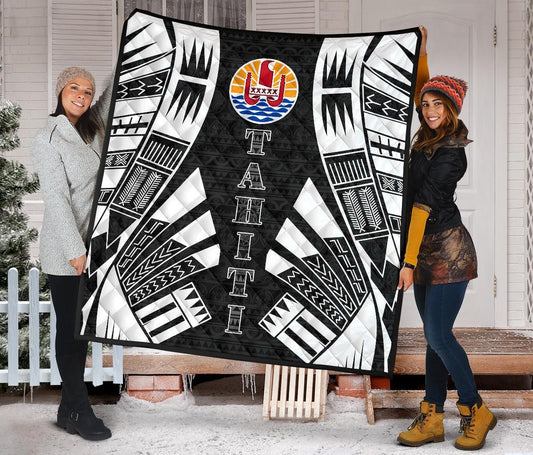 Tahiti Premium Quilt - Tahiti Flag Polynesian Chief Black Version