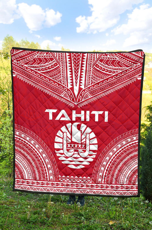Tahiti Premium Quilt - Tahiti Flag Polynesian Chief Red Version