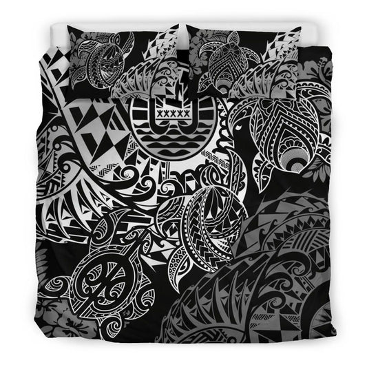 Tahiti Polynesian Bedding Set - White Turtle Hibiscus Flowing