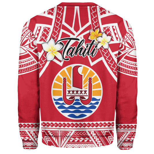 Tahiti Custom Personalised Sweatshirt Tahitian Plumeria Flowers Mix Tribal Patterns