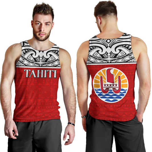 Tahiti Polynesian Custom Personalised Men Tank Top - Floral With Seal Red
