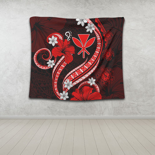 Hawaii Tapestry Kanaka Maoli Hibiscus Turtle Ocean Pacific Red Style