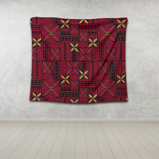 Samoa Tapestry Siapo Design Tribal Pattern Red