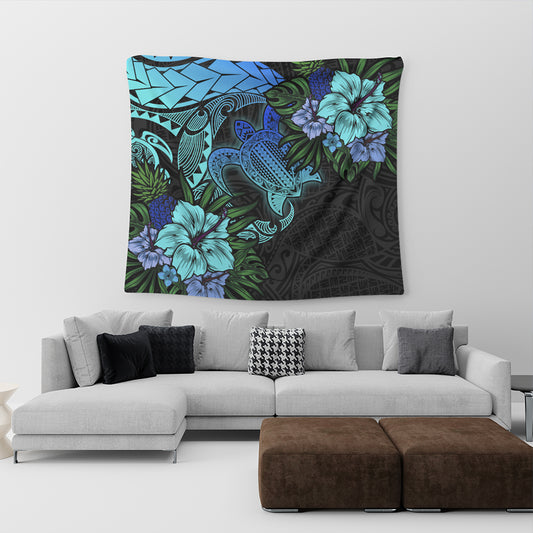 Hawaii Tapestry Hawaii Polynesian Turtle Tropical Blue Gardient Blue