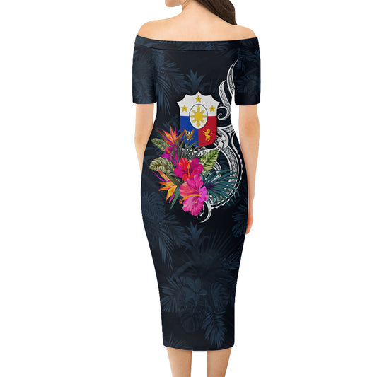 Philippines Filipinos Women Off Shoulder Dress Coat Of Arms Kakau Style Reggae