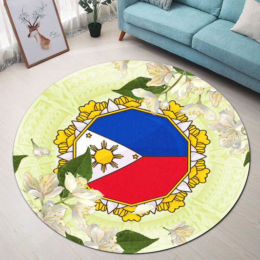Philippines Filipino Round Rug Filipino Sun And Jasmine Flowers