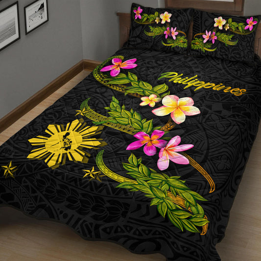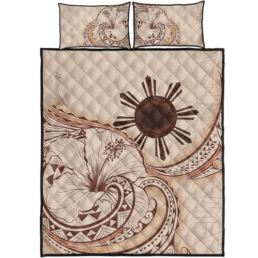 Philippines Filipinos Quilt Bed Set Philippines Sun And Map Plumeria Tribal