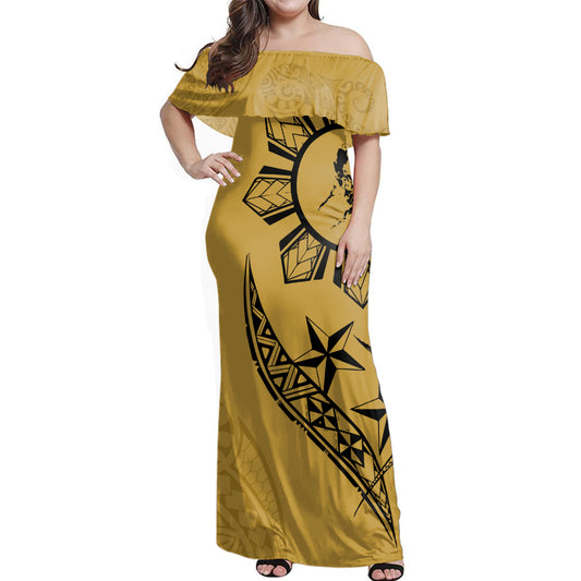 Philippines Polynesian Pattern Combo Dress And Shirt Gold Plumeria