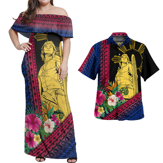 Philippines Filipinos Combo Dress And Shirt Lapu Lapu Polynesia Pattern With Tropical Flower