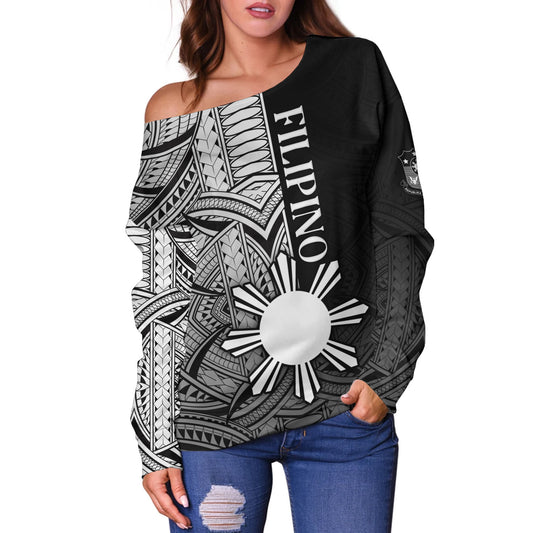 Philippines Filipinos Off Shoulder Sweatshirt Cool Filipino Tribal Tatau Style