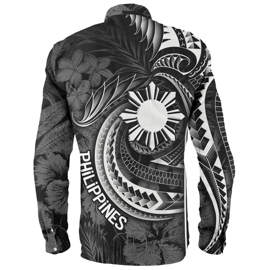 Philippines Filipinos Custom Personalised Long Sleeve Shirt Sun Tribal Patterns Tropical Flowers Curve Style