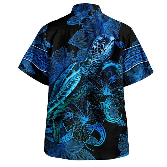 Philippines Filipinos Hawaiian Shirt Sea Turtle With Blooming Hibiscus Flowers Tribal Blue
