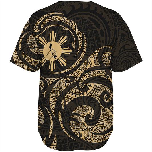 Philippines Filipinos Baseball Shirt Polynesian Tribal Pattern Simple Style Gold