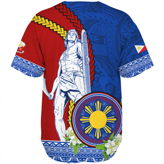 Philippines Filipinos Baseball Shirt Lapu Lapu King Jasmine Flowers Curve Design