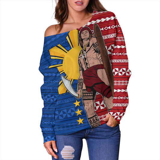 Philippines Filipinos Off Shoulder Sweatshirt Lapu-Lapu Hero With Polynesian PatternRegular price $69.99Regular price $69.99 Sale priceUnit price per$99.9930%