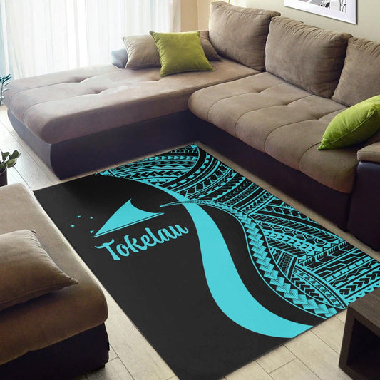 Tokelau Polynesian Custom Personalised Area Rug - Blue Tribal Wave