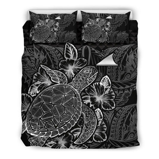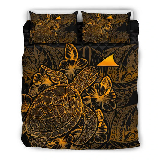 Tokelau Polynesian Bedding Set - Turtle With Blooming Hibiscus Gold