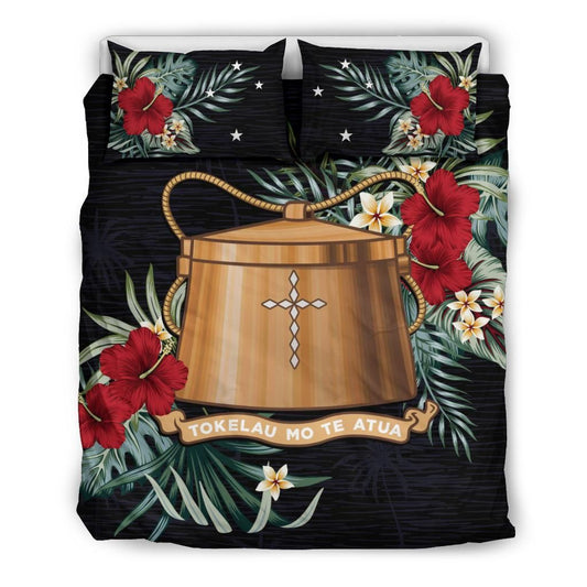 Tokelau Duvet Cover Set - Tokelau Flag & Red Hibiscus