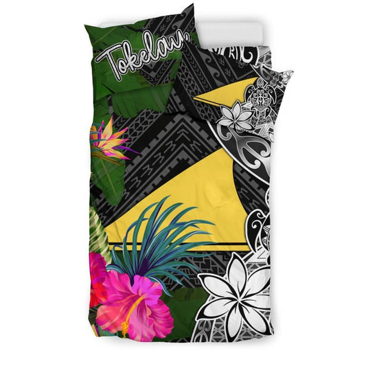 Tokelau Polynesian Personalised Bedding Set - Hibiscus And Banana Leaves